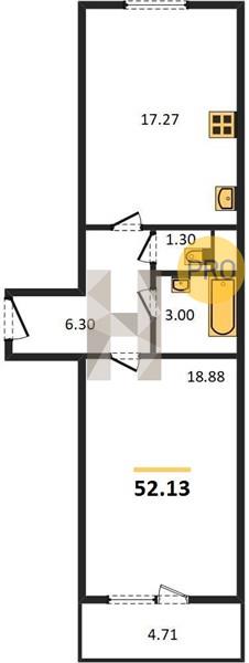 Общая площадь: 52.1 кв.м.