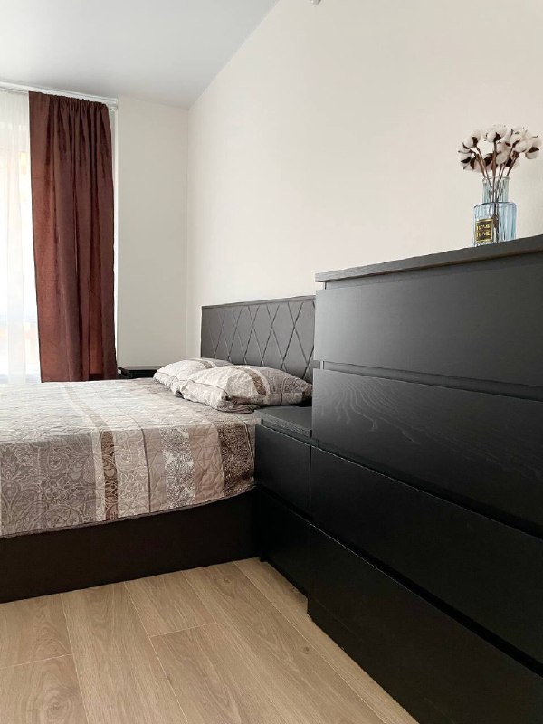 Квартира с хорошим ремонтом и хорошей мебелью и техникой. В комнате двуспальный телевизор, вместительный шкаф для вещей. На кухне хороший встроенный кух. гарнитур, микроволновая печь, холодильник (новый), обеденный стол. Санузел раздельный, в кафеле, есть стиральная машинка. Много магазинов прям под рукой, рядом школа и садик. Квартира с хорошим ремонтом, сдается на любой срок,