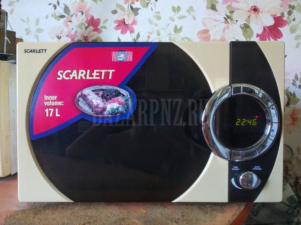 Об аппарате: Микроволновая печь повышенной мощности с грилем Scarlett SC-296 (ШВГ: 54.6х34.2х40.6) в отличном состоянии с гарантией. Идеально чистая внутри и снаружи. Кнопочная клавиатура - надёжнее сенсорной. Стандартные функции - разогрев, разморозка, выбор мощности и времени. Есть функции автоповара и блокировки клавиатуры от детей. Объём камеры - 17 л, мощность СВЧ - 1000 Вт, гриля - 1000 Вт (для сравнения мощность обычных печек 700-800 Вт)