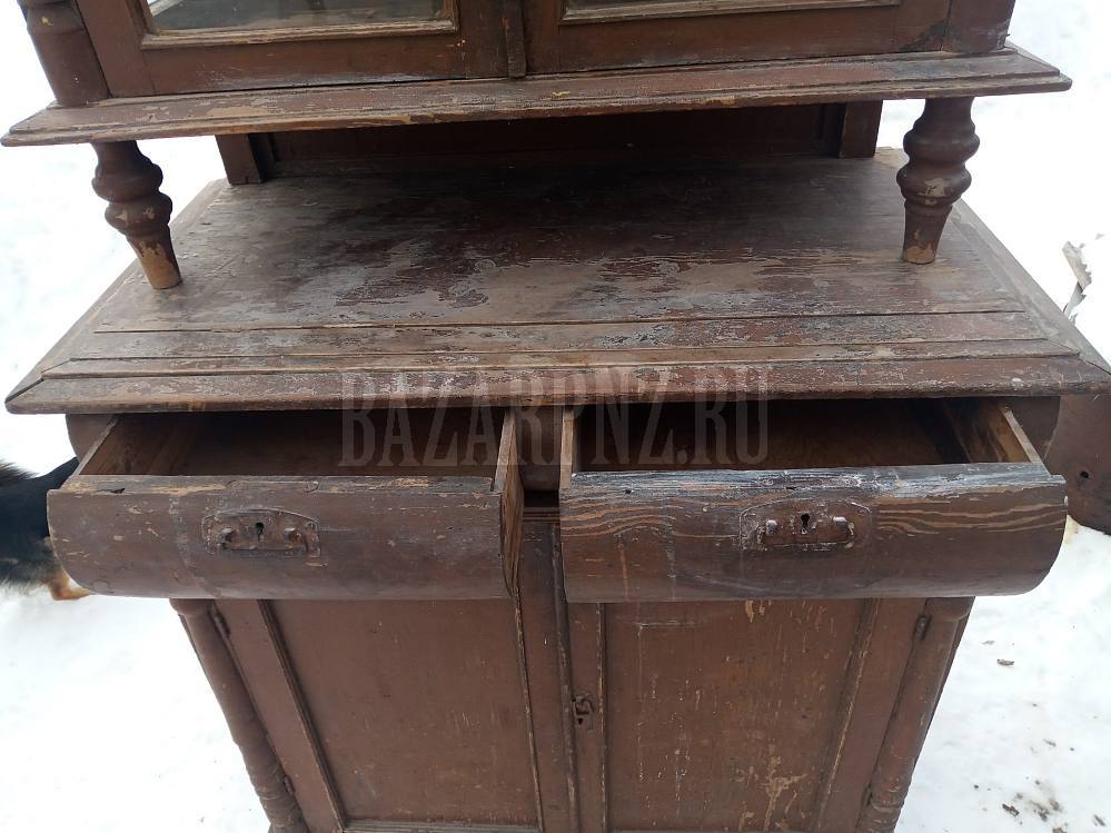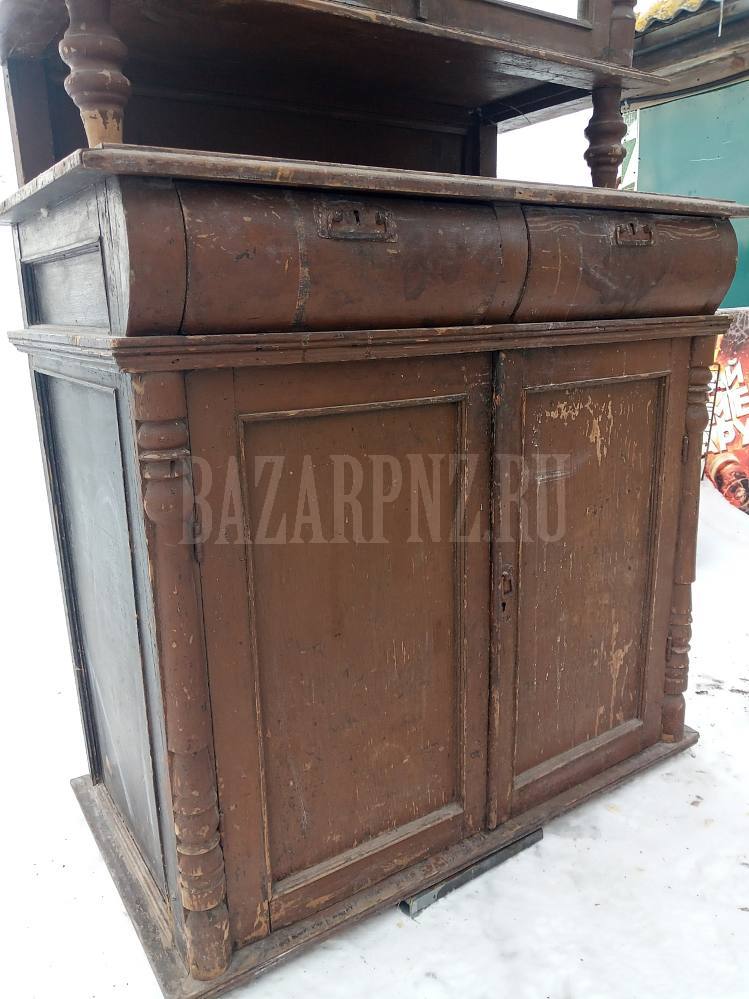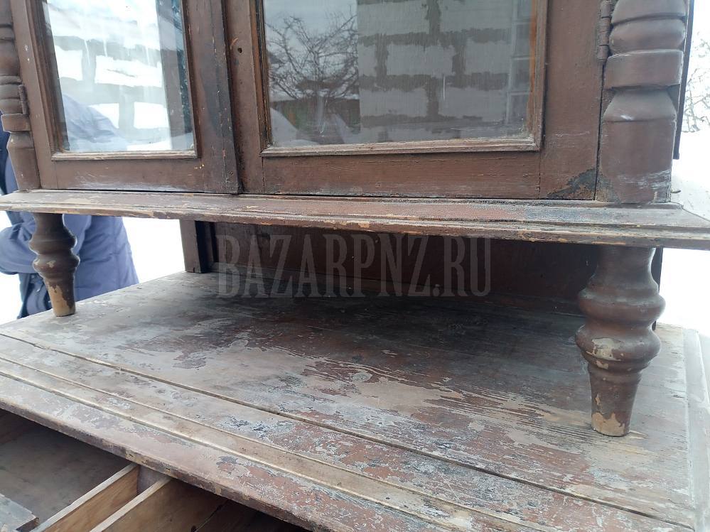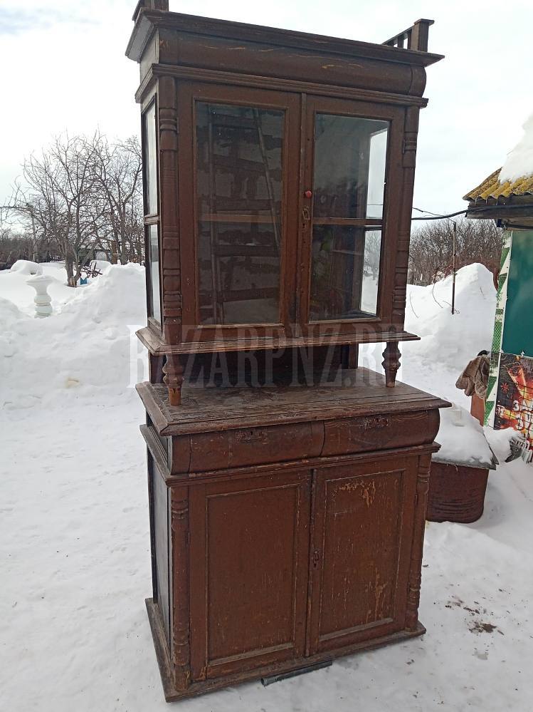 Продам деревянный буфет, старинный, крепкий, размер: нижняя часть -высота 100 см, ширина 103 см, глубина 56 см, верхняя часть - высота 126 см, ширина 98 см, глубина 41 см.